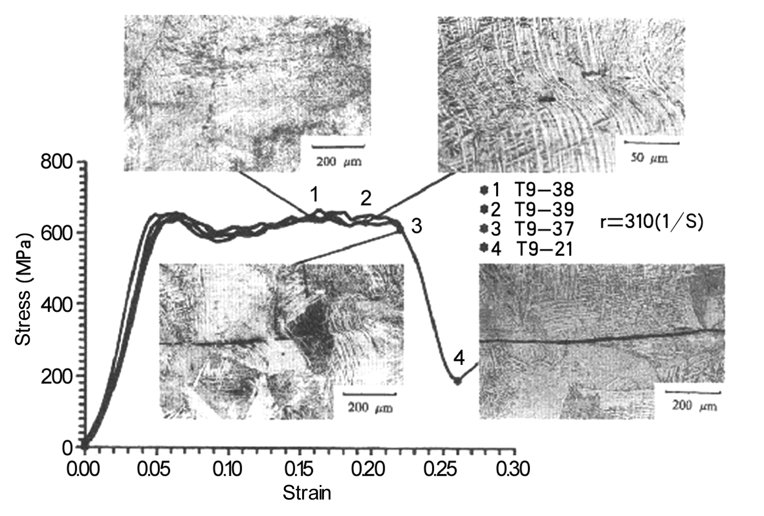 钛合金的应力应变曲线与剪切带的演化过程