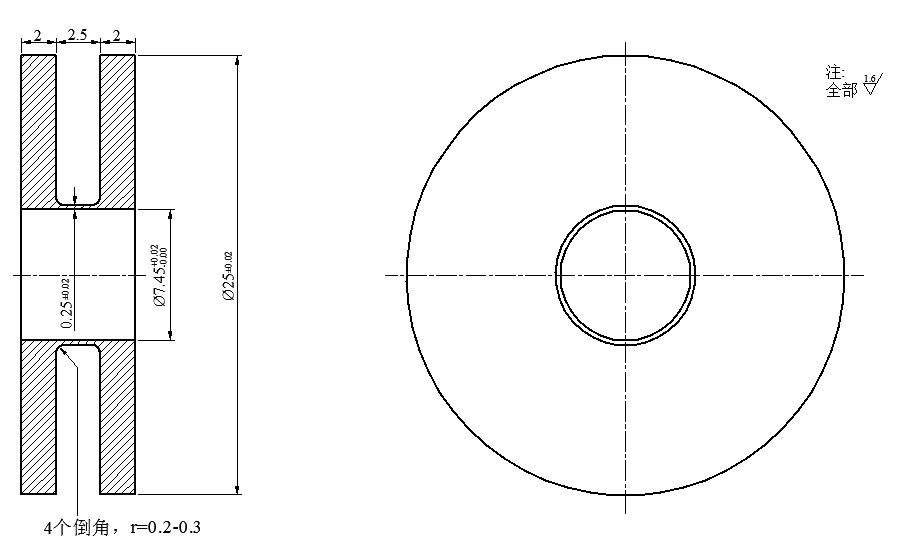 试样要设计为两侧带过渡圆盘的薄壁圆筒形状,两侧的轮缘尺寸要保证与波导杆的阻抗匹配。试样的实验段内外圆周面加工要保证同轴度在0.01mm的误差范围内,为防止应力集中,实验段的末端要用半径0.2~0.3mm的圆角过渡。