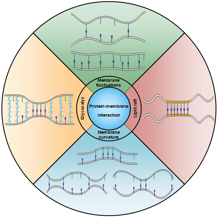 该工作从细胞膜热扰动、膜曲率、糖萼以及脂筏四个方面探究了蛋白质-细胞膜相互作用对膜间受体-配体键合的影响,深化了人们对蛋白质-细胞膜相互作用在细胞粘附过程中发挥作用的认识。