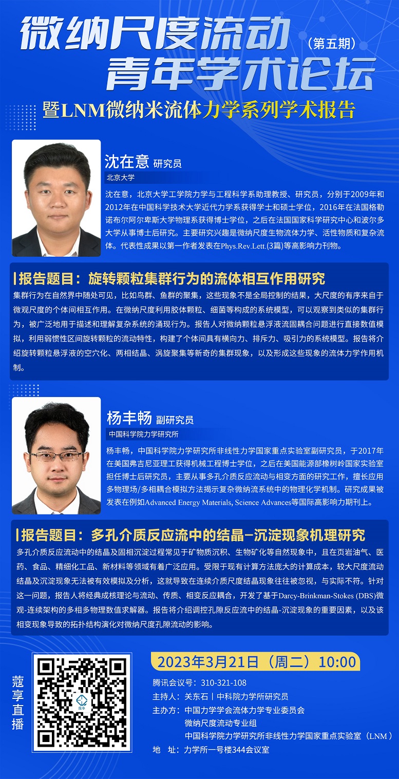 (3月21日 10:00 1号楼344会议室 )微纳米尺度流体青年学术论坛 暨微纳米流体力学系列学术报告